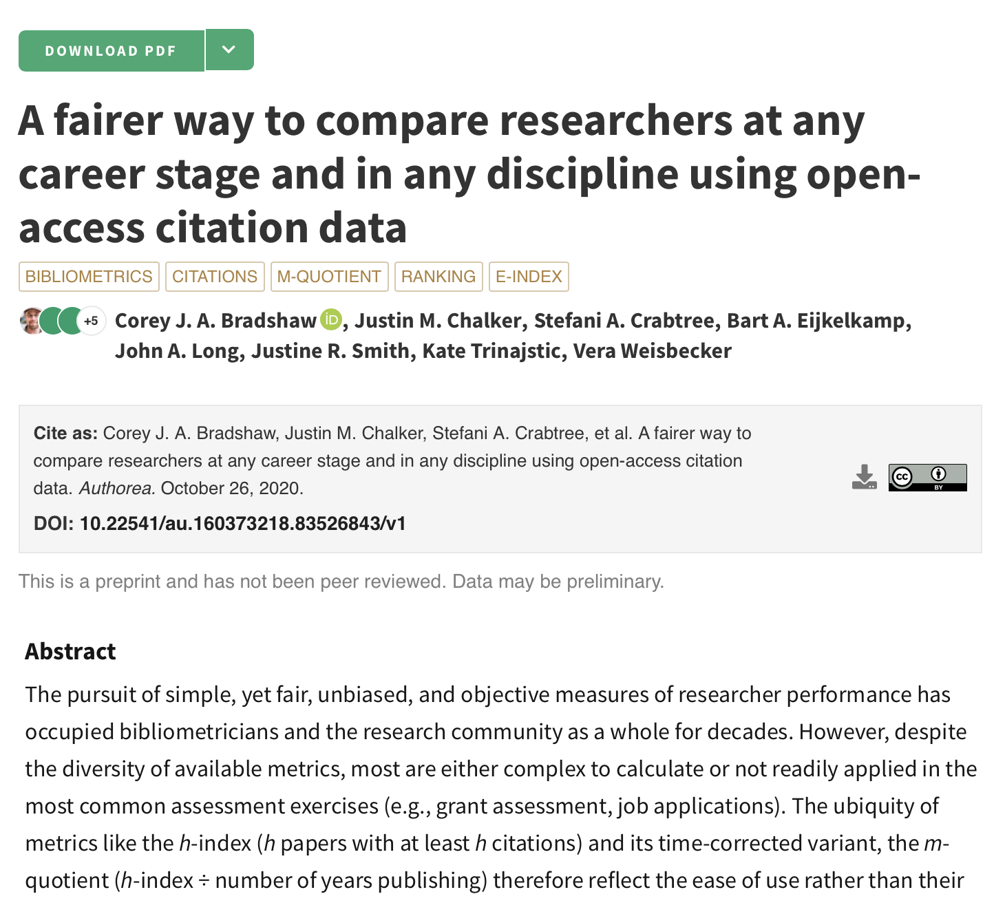 Hence, the h-index still rules, despite its many flaws, like under-emphasising a researcher’s entire body of work, gender biases, and weighting towards people who have been at it longer. The h-index is also provided free of charge by Google Scholar, so it’s the easiest metric to default to.