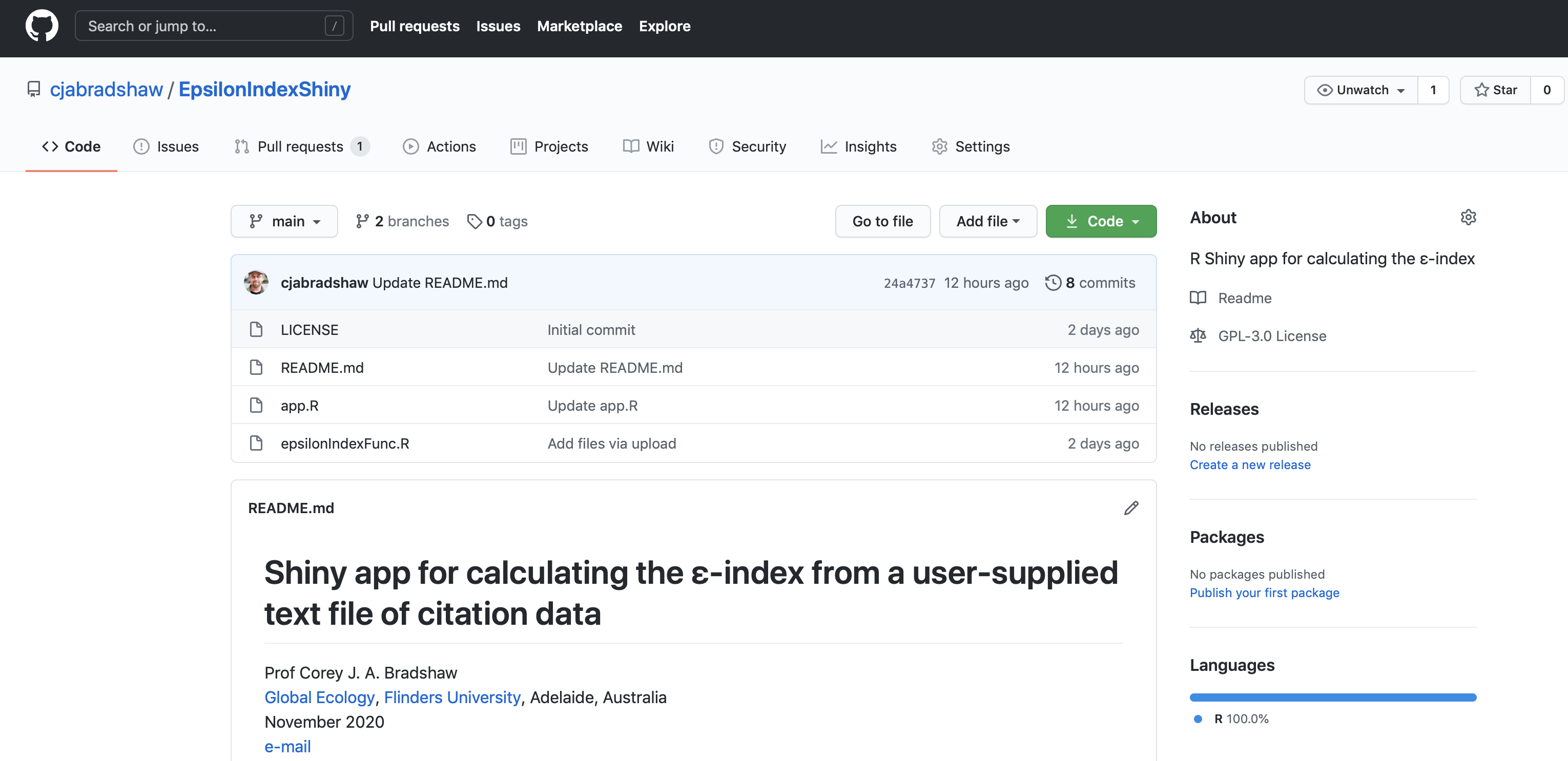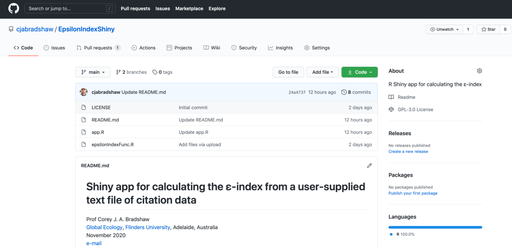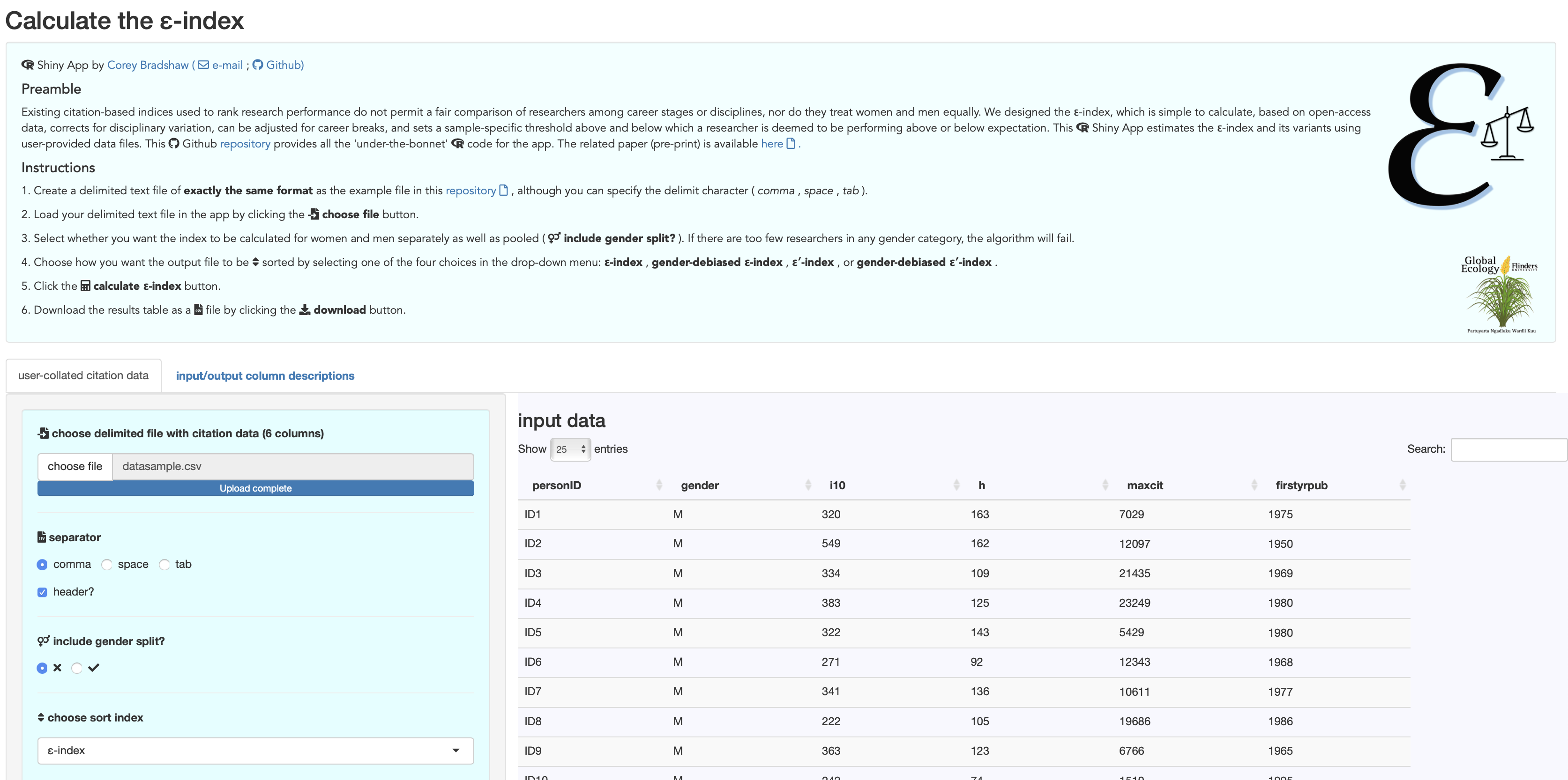 You can access and use the ε-index app here: cjabradshaw.shinyapps.io/epsilonIndex.