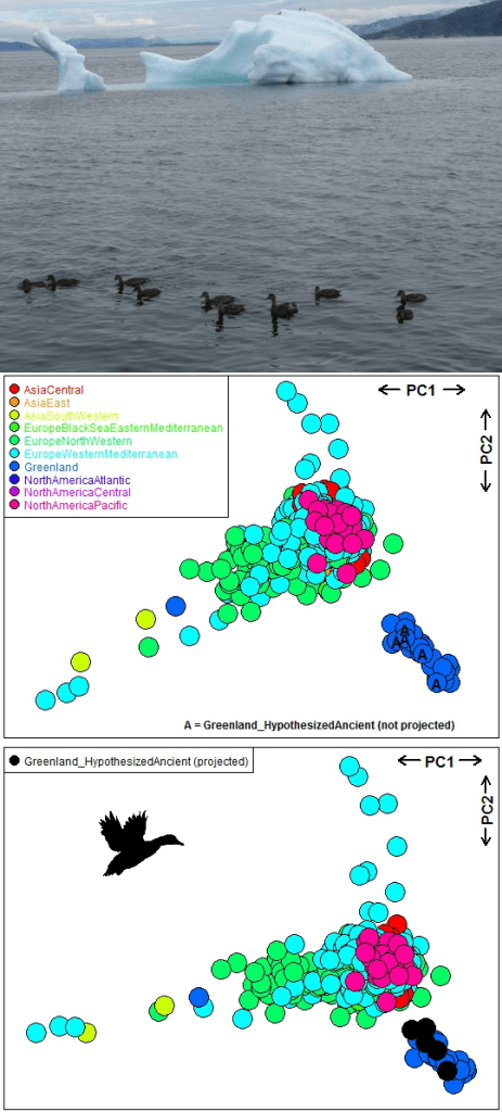 Kraus and colleagues (26) examined the global flyways of mallards Anas platyrhynchos using 364 SNPs (all SNPs had missing values) from 695 individuals belonging to 55 populations and 10 flyways. This study supports panmixia (random mating) or lack of genetic differentiation among flyways except for the Greenland flyway, suggesting